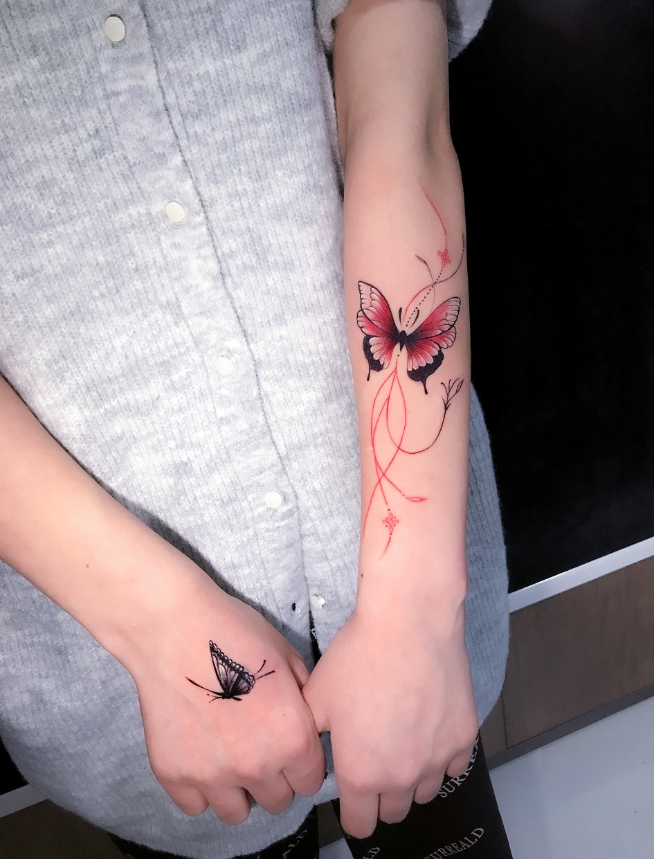 蝴蝶纹身是一种古老而又美丽的纹身设计。它们通常代表着变化、自由、美丽和轻盈。蝴蝶纹身可以根据个人喜好和风格进行设计,有些人选择简约的黑色蝴蝶,而另一些人则喜欢用丰富的色彩和图案来增加纹身的艺术感。另外,蝴蝶纹身也可以根据不同的文化背景赋予不同的含义,例如在中国文化中,蝴蝶被视为幸福和长寿的象征。无论你选择怎样的设计,蝴蝶纹身都会为你的肌肤增添一份独特的魅力。